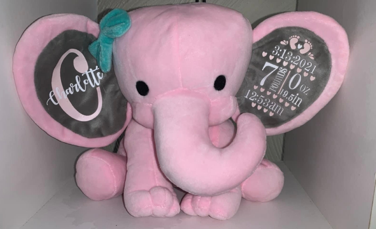 These elephants are the cutest keepsake for your babies! After purchase please send a contact form with the following information -